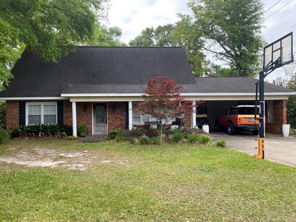 You will fall in love with this house as soon as you drive up. Great curb appeal on a great lot! Hardwood greats you in the foyer leading to the spacious grand room with double trey ceilings and a gas fireplace. Kitchen is open to the grand room with tile floors & pantry cabinet. Breakfast room and bar. 2 bedrooms & 1 bathroom at the front with the main suite at the back of the home. Nice main suite with trey ceiling in bedroom and lots of storage cabinets leading to a luxurious bathroom boasting a soaking tub, separate shower, 2 vanities, tons of counter space & a large walk-in closet. The laundry room is off the kitchen towards the nice large garage. There is more! Nice size covered patio with a wood privacy fence around the back yard, Convenient to Southeast Health, ACOM and plenty of shopping!!!